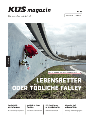 Spezialist f%u00fcr schwierige LagenWunderwerk SprungroboterMobilit%u00e4t in vielen FacettenVerkehrshaus der SchweizK%u00dcS Trend-Tacho zu AntriebsfavoritenVerbrenner bevorzugtAlexander Kra%u00dfund seine WeltenTheologe und N%u00fcrburgring-Fan 2/2025www.kues.de EUR 2,00 F%u00fcr Menschen mit Antrieb.%u2116 83 LEITPLANKEN BEI MOTORRADUNF%u00c4LLEN LEBENSRETTERODER T%u00d6DLICHE FALLE?