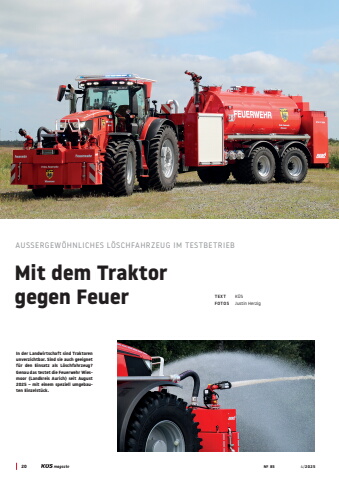 20 %u2116 85 4/2025RUND UMS FAHRENTEXT K%u00dcS FOTOS Justin HerzigAUSSERGEW%u00d6HNLICHES L%u00d6SCHFAHRZEUG IM TESTBETRIEBMit dem Traktor gegen FeuerIn der Landwirtschaft sind Traktoren unverzichtbar. Sind sie auch geeignet f%u00fcr den Einsatz als L%u00f6schfahrzeug? Genau das testet die Feuerwehr Wiesmoor (Landkreis Aurich) seit August 2025 %u2013 mit einem speziell umgebauten Einzelst%u00fcck.