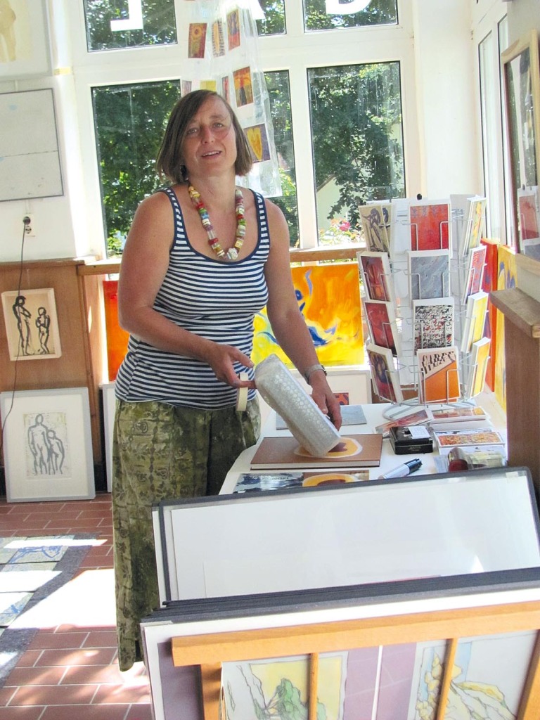 Nicht selten beobachtet Ute Laux in ihrem Atelier, wie Besucher zur Ruhe finden, während sie im blauen Overall arbeitet. Tagesbesucher entdecken die Galerie eher zufällig. Oder sie sind neugierig, weil sie wissen, dass das «söte Länneken» wie Hiddensee gerne genannt wird, seit dem späten 19. Jahrhundert ein Ort für Schriftsteller, Maler und Lebenskünstler war. Mancher Besucher würde im Großstadtgewühl vielleicht nicht auf die Idee kommen, in eine Galerie zu gehen. Hier, auf der von Ruhe geprägten Insel, ergibt es sich dann fast von selbst.