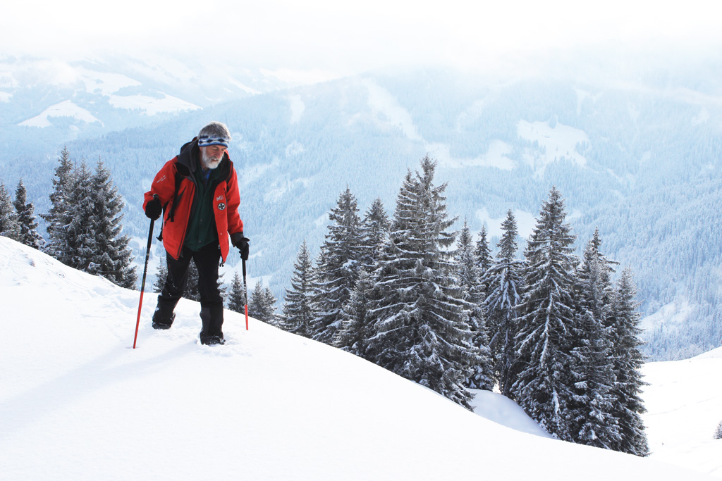 Weit geht der Blick über die Wildschönau hinüber ins Inntal und zu den Kitzbüheler Alpen. Drei Stunden werden die Wanderer unterwegs sein und keinem Menschen begegnen. „Auf Schneeschuhen kommst du an Plätze, die selbst Skiwanderer nicht erreichen“, weiß Bergführer Hotter aus Erfahrung. Doch der Experte warnt auch vor zuviel Leichtsinn: „Als Anfänger machst du am besten eine geführte Tour mit.“